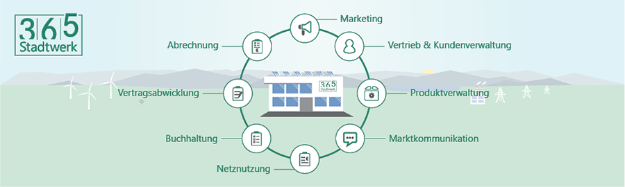 Ein besonderes Kennzeichen der neuen Lösung ist, dass sie die Abbildung und Unterstützung neuer Geschäftsmodelle ermöglicht, die im Energiemarkt 4.0 zentrale Bedeutung erlangen werden. Zur Unterstützung komplexer Prozesse kommen beispielsweise virtuelle Assistenten, Chatbots und künstliche Intelligenz zum Einsatz. Mit dem Cloudansatz bietet sich Stadtwerk365 auch als schlanke Lösung für künftige Kleinstanbieter im Energiemarkt an. Primär richtet sich die neue Software heute an drei Zielgruppen: